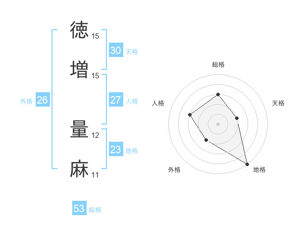 徳増 量麻さんの総格は53画の3点!