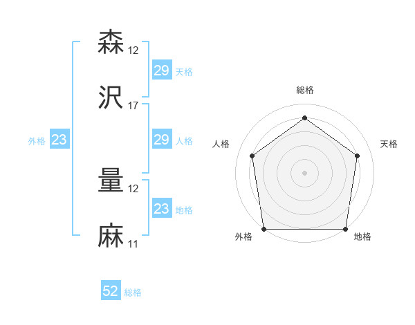 森沢 量麻さんの総格は52画の4点!