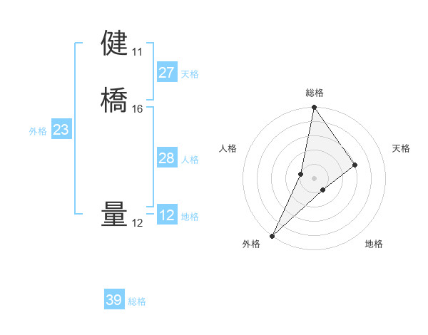 健橋 量さんの総格は39画の5点!