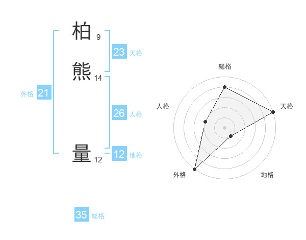 柏熊 量さんの総格は35画の4点!