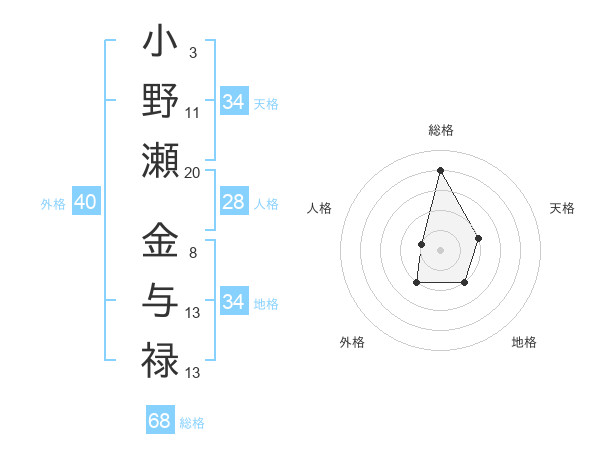 小野瀬 金与禄さんを姓名の画数から五運を鑑定