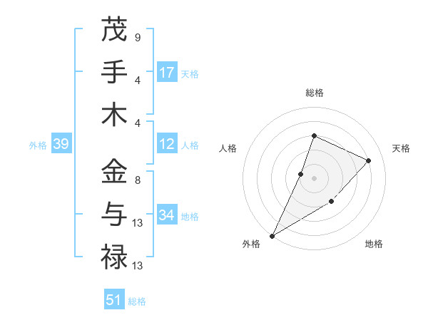 茂手木 金与禄さんを姓名の画数から五運を鑑定