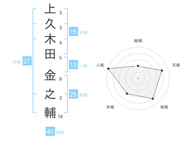 上久木田 金之輔さんを姓名の画数から五運を鑑定