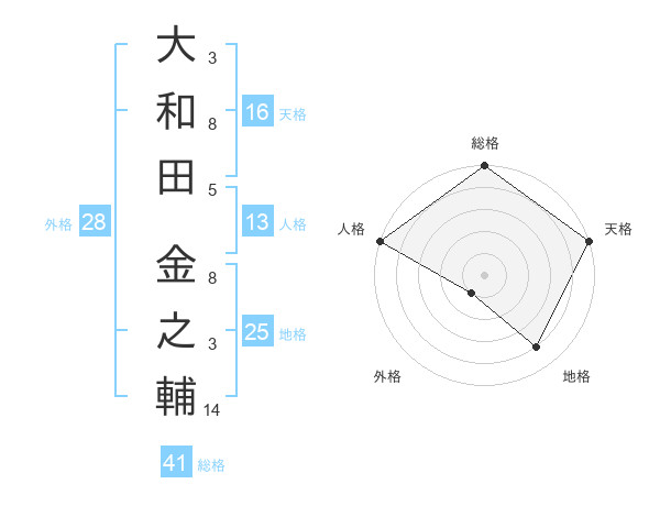 大和田 金之輔さんを姓名の画数から五運を鑑定