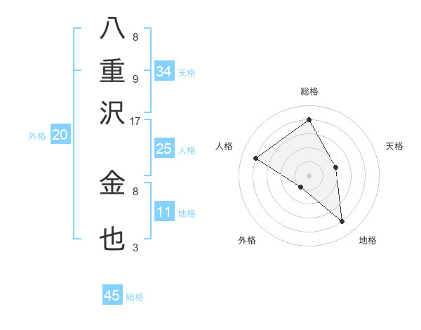 八重沢 金也さんを姓名の画数から五運を鑑定