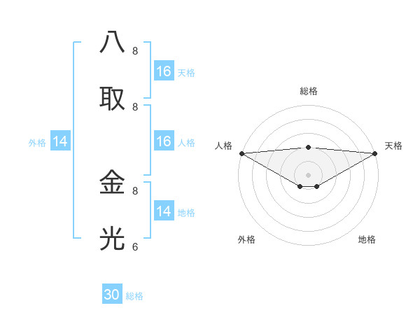 八取 金光さんの天格は16画の5点!