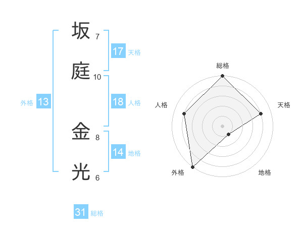 坂庭 金光さんの総格は31画の5点!