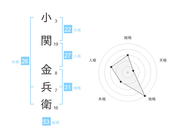 小関 金兵衛さんを姓名の画数から五運を鑑定