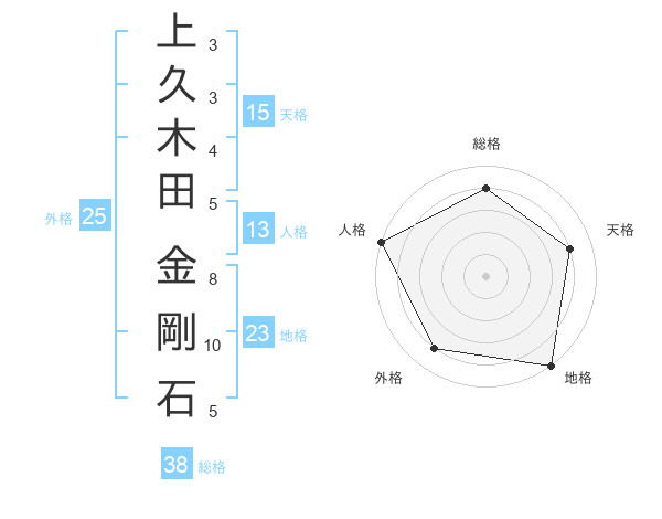 上久木田 金剛石さんを姓名の画数から五運を鑑定
