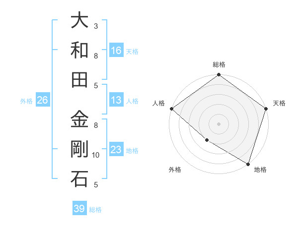 大和田 金剛石さんを姓名の画数から五運を鑑定