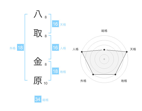 八取 金原さんの天格は16画の5点!