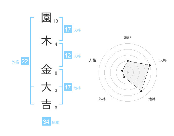 園木 金大吉さんを姓名の画数から五運を鑑定
