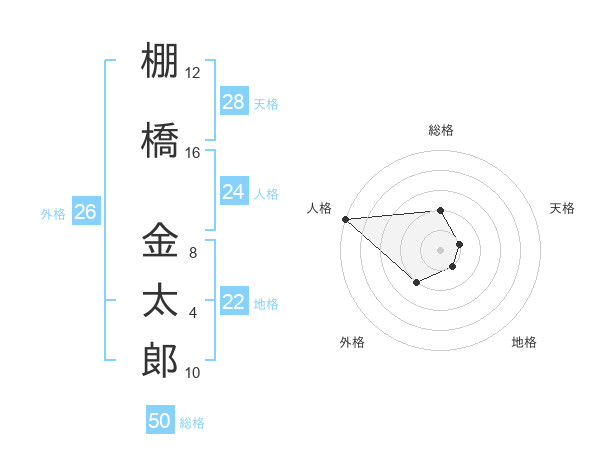 棚橋 金太郞さんを姓名の画数から五運を鑑定