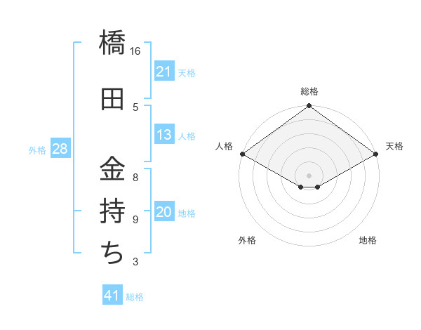 橋田 金持ちさんを姓名の画数から五運を鑑定