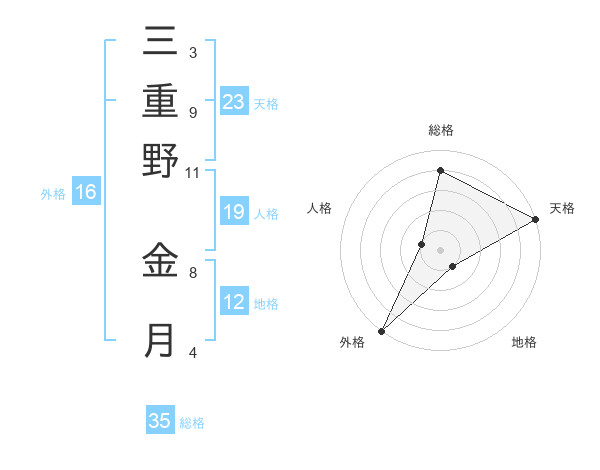三重野 金月さんの総格は35画の4点!