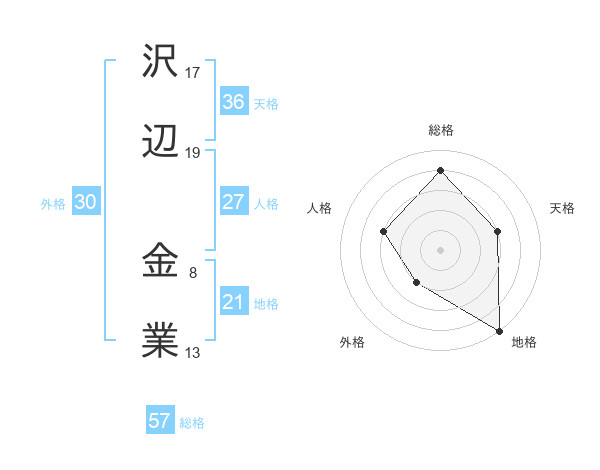 沢辺 金業さんの総格は57画の4点!