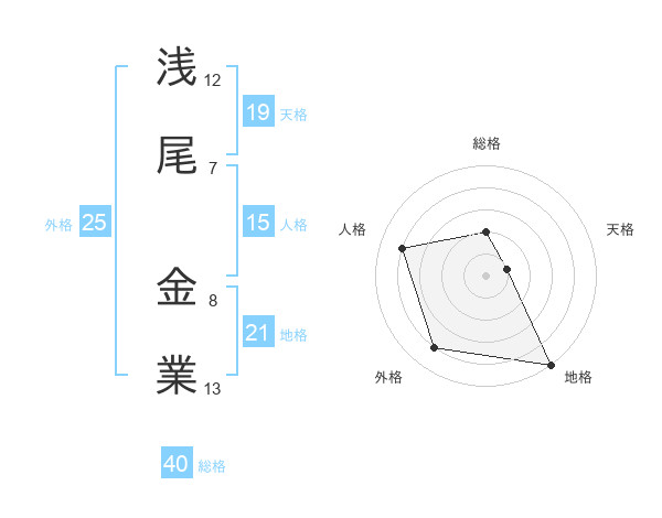 浅尾 金業さんを姓名の画数から五運を鑑定