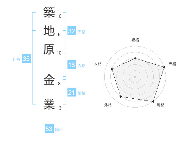 築地原 金業さんの総格は53画の3点!