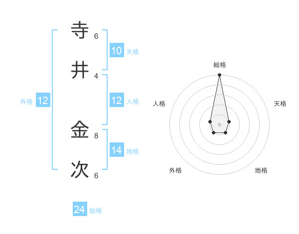 寺井 金次さんの総格は24画の5点!
