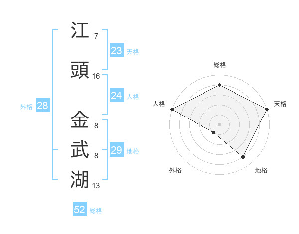 江頭 金武湖さんの総格は52画の4点!