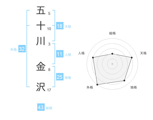 五十川 金沢さんを姓名の画数から五運を鑑定
