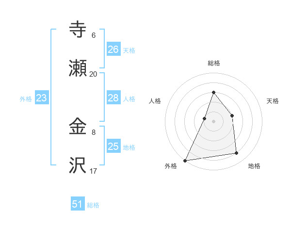 寺瀬 金沢さんの総格は51画の3点!