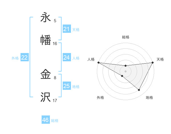 永幡 金沢さんを姓名の画数から五運を鑑定