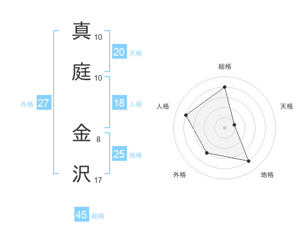 真庭 金沢さんの総格は45画の4点!