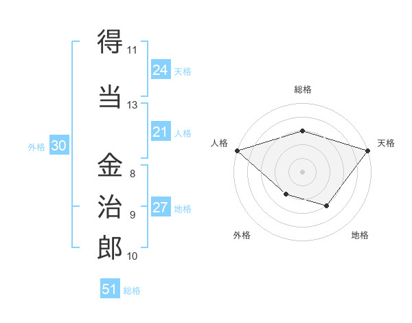 得当 金治郎さんの総格は51画の3点!