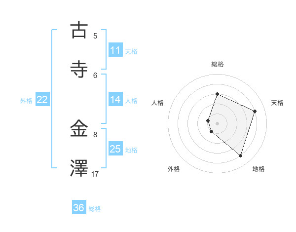古寺 金澤さんの地格は25画の4点!