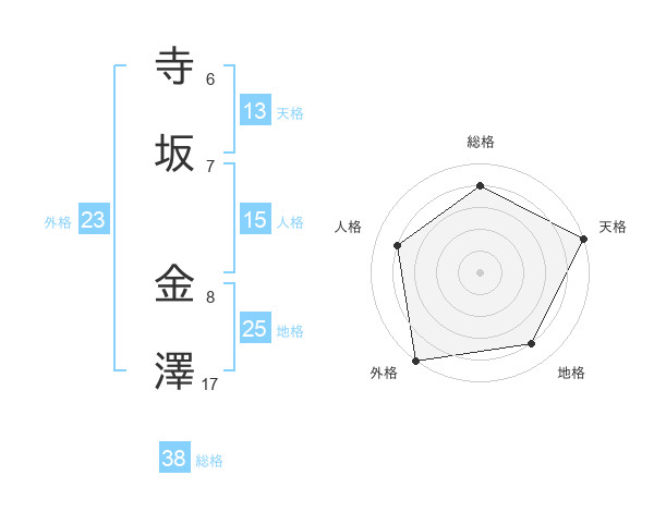 寺坂 金澤さんを姓名の画数から五運を鑑定
