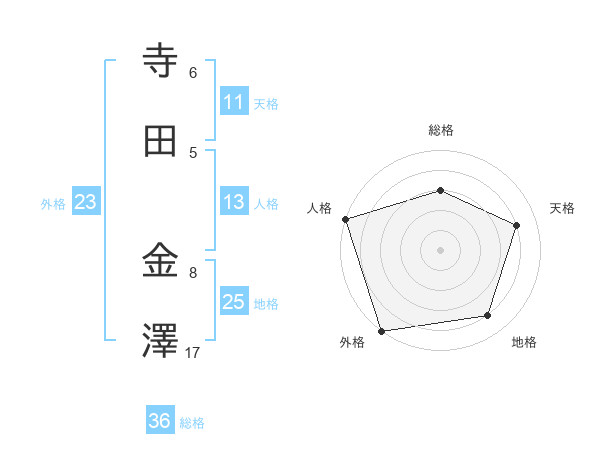 寺田 金澤さんの外格は23画の5点!