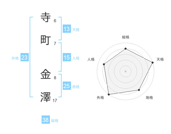 寺町 金澤さんの総格は38画の4点!