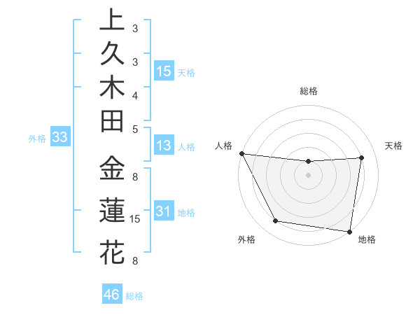 上久木田 金蓮花さんを姓名の画数から五運を鑑定