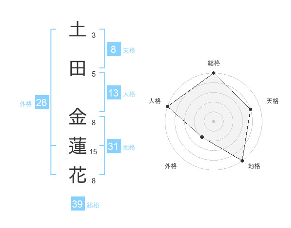 土田 金蓮花さんを姓名の画数から五運を鑑定