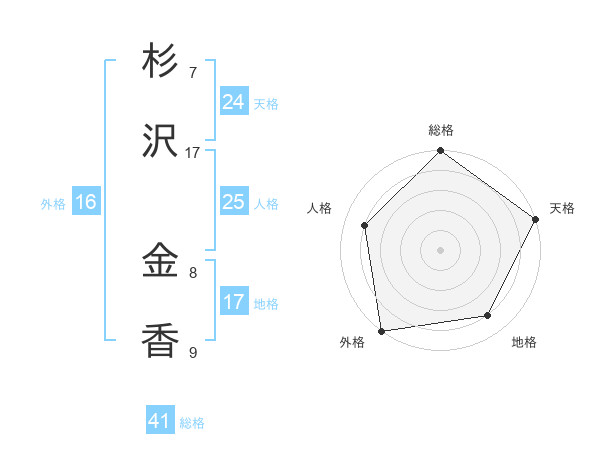 杉沢 金香さんを姓名の画数から五運を鑑定