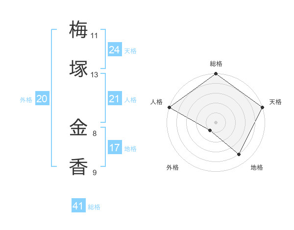 梅塚 金香さんの天格は24画の5点!