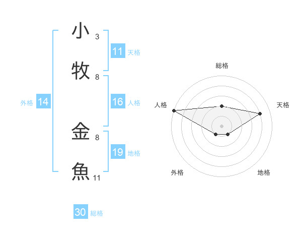 小牧 金魚さんを姓名の画数から五運を鑑定