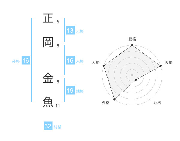 正岡 金魚さんを姓名の画数から五運を鑑定