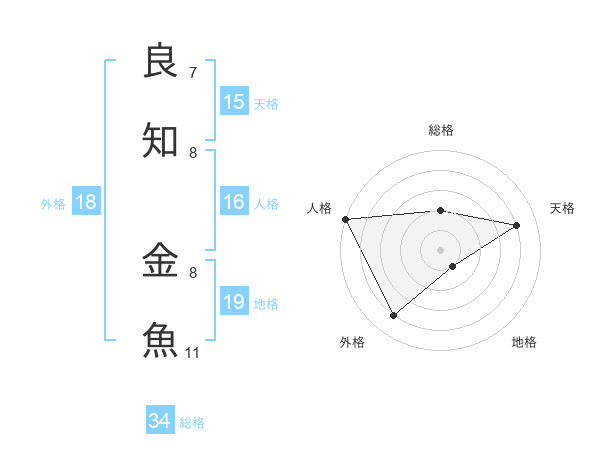 良知 金魚さんの外格は18画の4点!