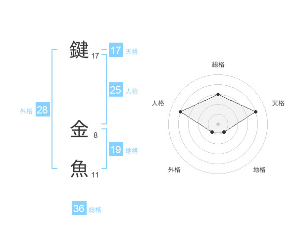 鍵 金魚さんの天格は17画の4点!