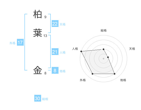 柏葉 金さんの天格は22画の1点!