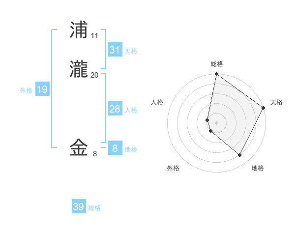 浦瀧 金さんの総格は39画の5点!
