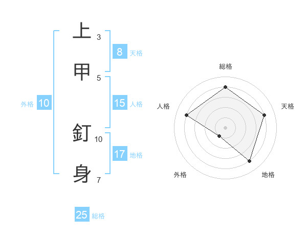 上甲 釘身さんを姓名の画数から五運を鑑定