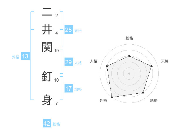二井関 釘身さんの外格は13画の5点!