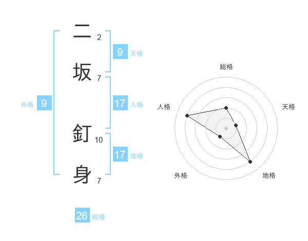 二坂 釘身さんの総格は26画の2点!