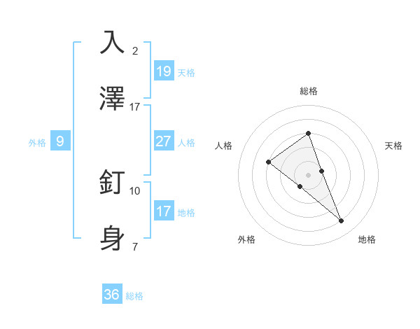 入澤 釘身さんを姓名の画数から五運を鑑定