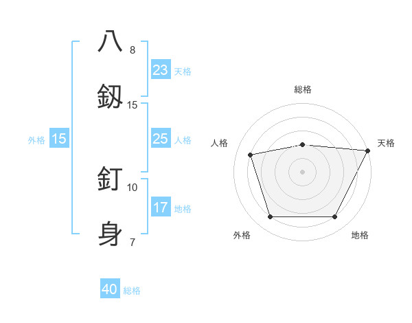 八釼 釘身さんの天格は23画の5点!