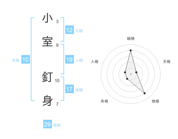 小室 釘身さんの総格は29画の4点!