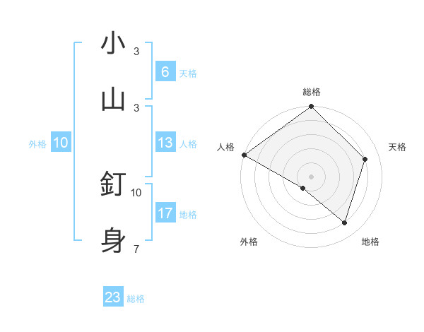 小山 釘身さんの総格は23画の5点!
